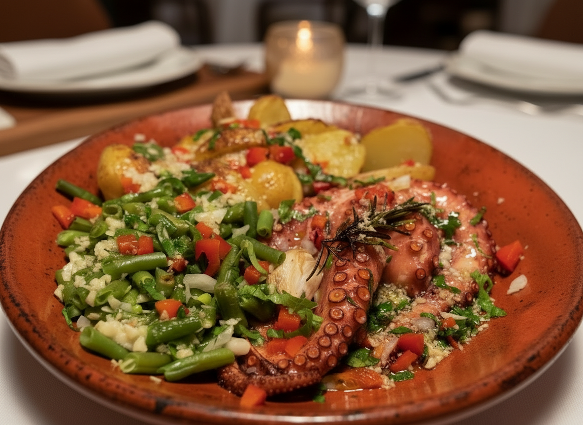 Restaurante Petiscos Bar Tasca do Dias RESERVAS WhatsApp Find Us COZINHA PORTUGUESA Recomendações do Chefe Dias Polvo à Lagareiro Roasted octopus, garlic and coriander sautéed in olive oil with ”punched” potatoes and vegetables Bacalhau à Lagareiro Roasted cod loin, garlic sautéed in olive oil with ”punched” potatoes and vegetables Arroz de Frutos do Mar Seafood Rice (for 2) reservas para grupos Espetadas Lulas com Gambas Grilled squid and prawn skewer, peppers, onions, with baked potatoes or rice Espetadas de novilho de leite Grilled beef skewer, peppers and onions, with french fries or rice Bife à portuguesa Fried beef steak in olive oil and garlic, bay leaf, ham, egg, traditional sauce, fried potatoes slices MENU COMPLETO